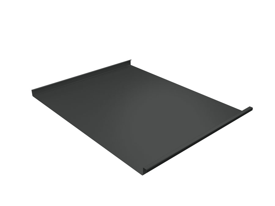 Обращаем ваше внимание, что особенностью фальцевой кровли является возможное наличие волнистости, вызванное спецификой данного материала. Плоская поверхность не имеет достаточной жесткости, как следствие, волнистость может проявляться из-за напряжения в металле, неровной обрешетки или температурных расширений. Такой эффект носит сугубо эстетический характер и не влияет на функциональную составляющую фальцевой панели Гранд Лайн Фальц двойной стоячий 0.45 Полиэстер на замках RAL 7016 антрацитово-серый 503362.