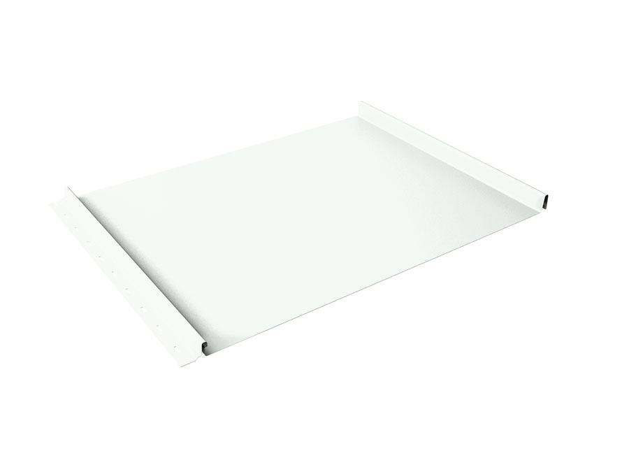 Обращаем ваше внимание, что особенностью фальцевой кровли является возможное наличие волнистости, вызванное спецификой данного материала. Плоская поверхность не имеет достаточной жесткости, как следствие, волнистость может проявляться из-за напряжения в металле, неровной обрешетки или температурных расширений. Такой эффект носит сугубо эстетический характер и не влияет на функциональную составляющую фальцевой панели Гранд Лайн Кликфальц 0.45 Полиэстер на замках RAL 9003 сигнальный белый 501068.