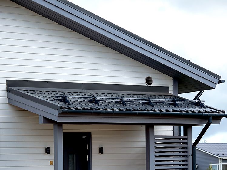 Фото проектов с использованием металлочерепицы серый графит Grand Line